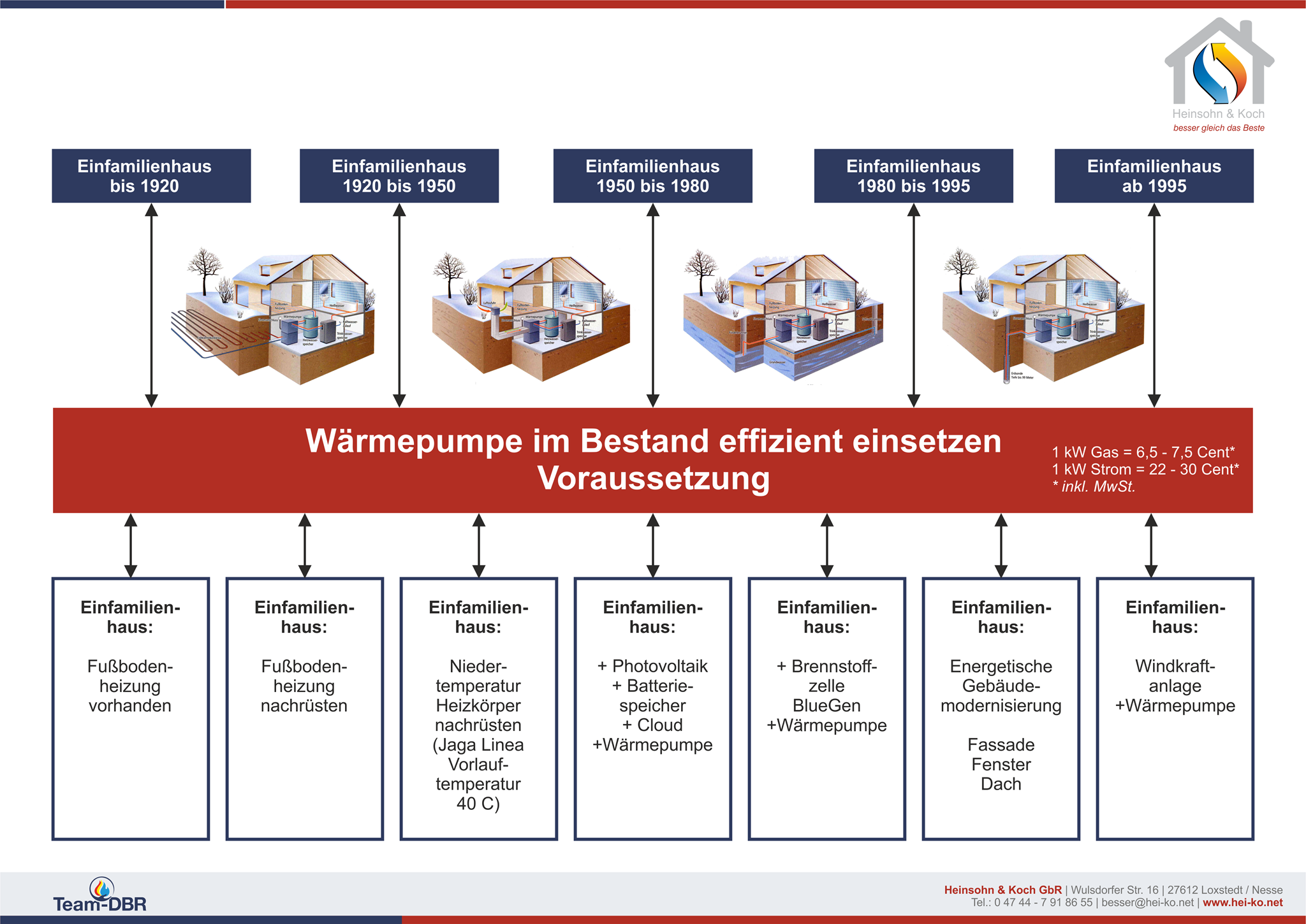 Wie kann ich effizient eine Wärmepumpe in Bestandsgebäuden einsetzen, wenn ich den Wärmebedarf des Hauses berechnet habe? Welche Voraussetzungen sind notwendig, um es optimal zu machen? Welche Voraussetzungen gibt es, die nicht optimal sind aber trotzdem dazu führen, dass man eine Wärmepumpe auch effizient einsetzen kann?